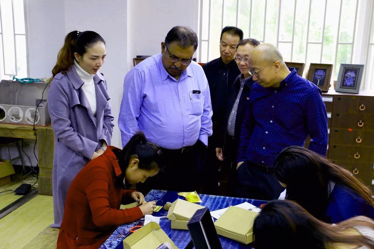 (这些用银丝、锡箔纸制作的工艺品做得如此精致细腻、美轮美奂,竟都是出自在校学生之手,让人惊叹!)在翠羽银丝手工坊,甘古里总裁对精美的手工制品连连称赞,并对学校鼓励学生自主创业创新的做法表示赞同。