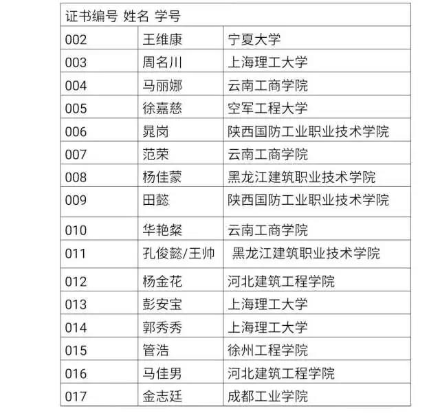 黑龙江建筑职业技术学院-吕振宇、宁夏大学-马维康、上海理工大学-马良、哈尔滨信息工程学院-唐星月、ky开元集团-白志强
