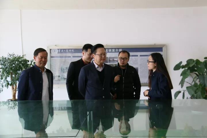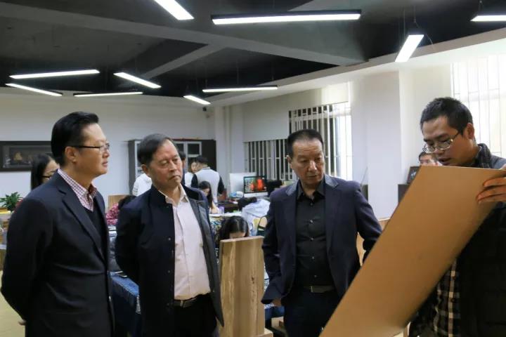 我校国际教育学院莫艳萍院长向泰国的各位领导介绍了ky开元集团沙盘规模图并参观了各个实验(训)室。泰国校长对创业孵化二区里的翠羽银丝中的一幅名为《唐卡》的作品非常感兴趣,并与老师交流了藏佛教文化的寓意。