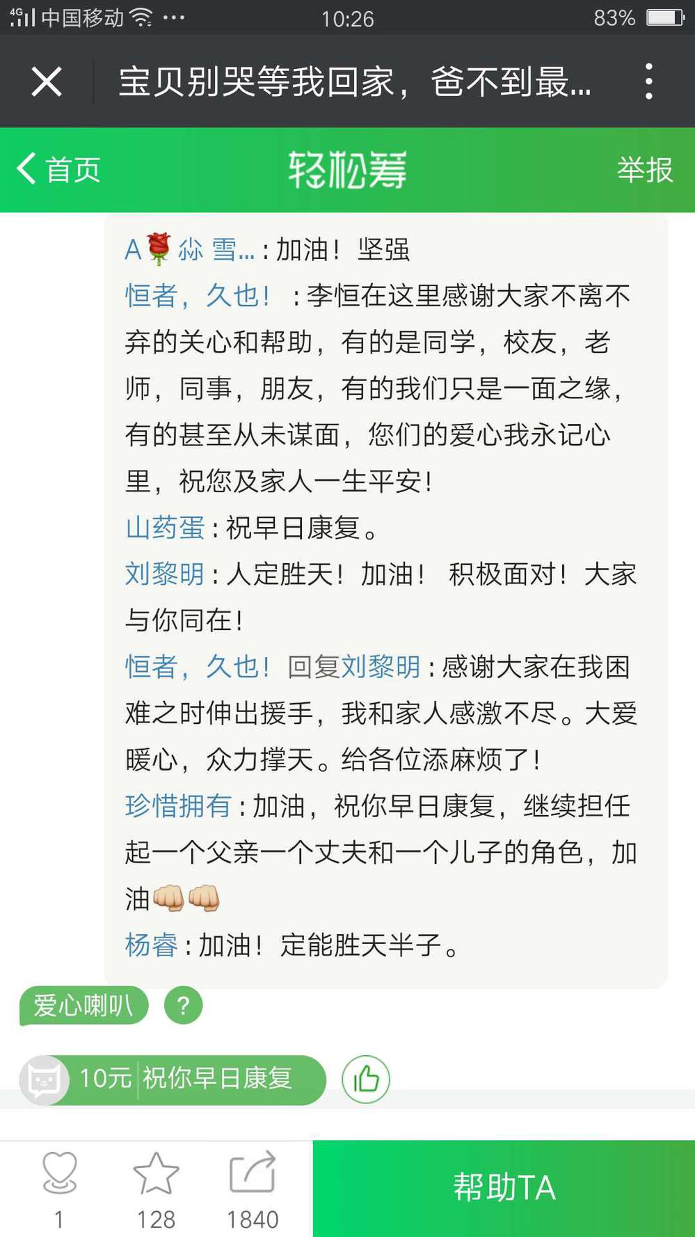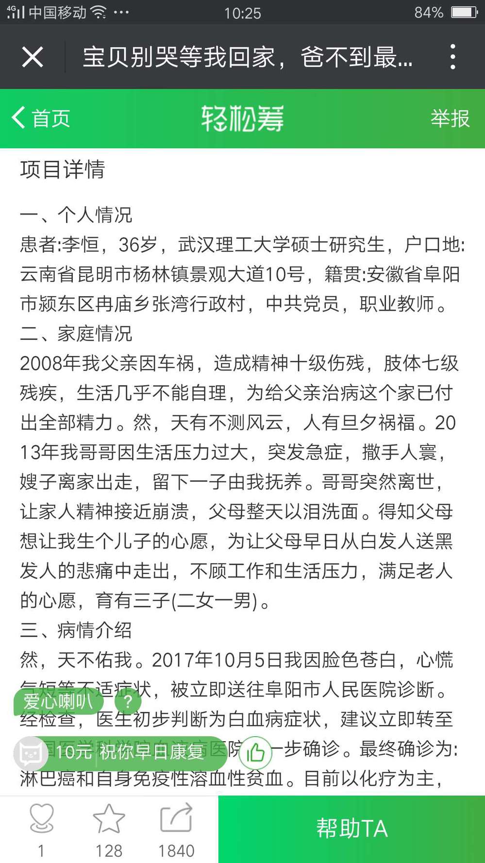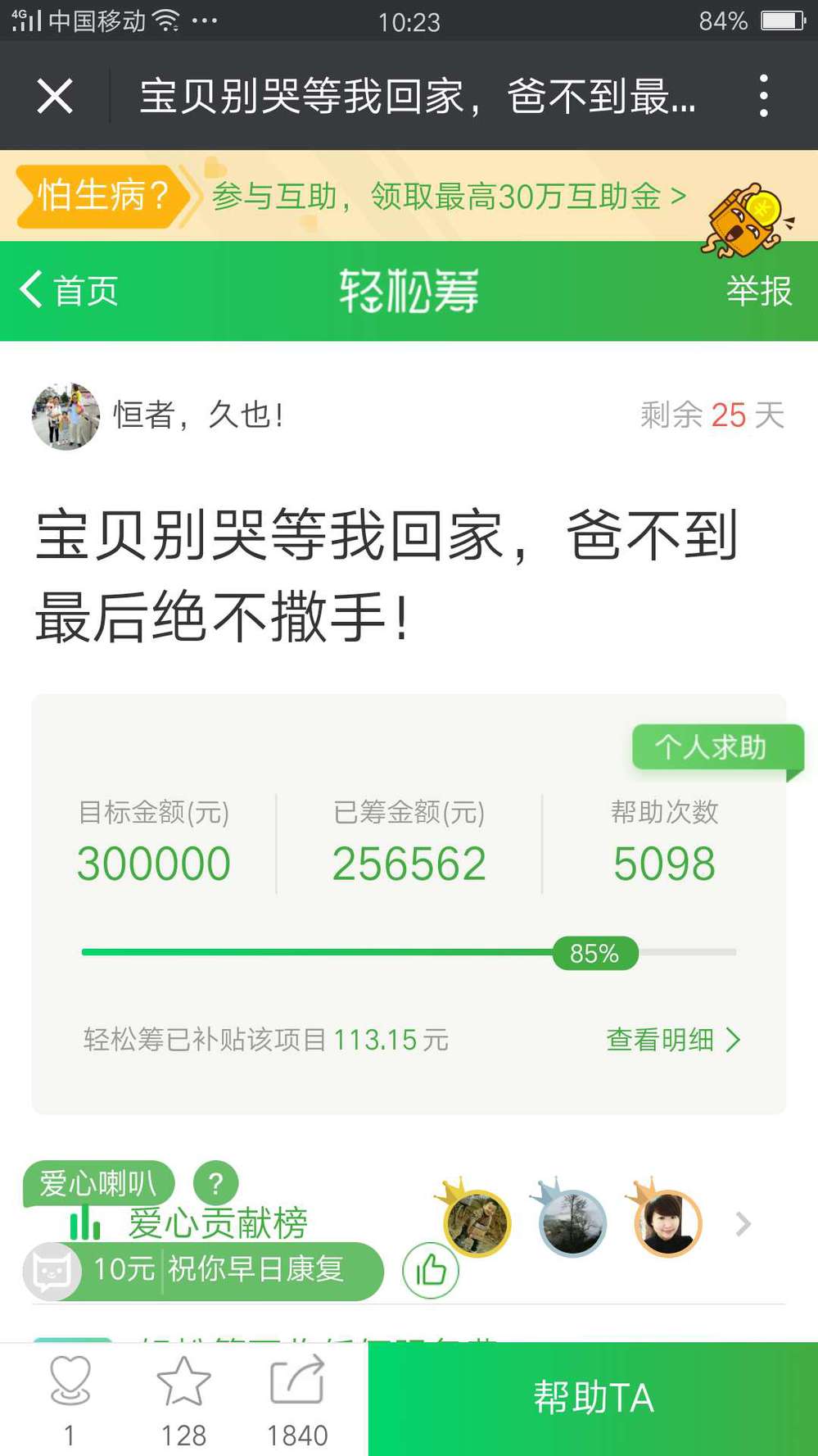 病魔无情,人间有爱,涓涓细流,汇成江海!