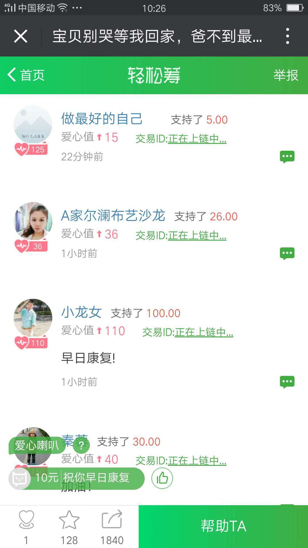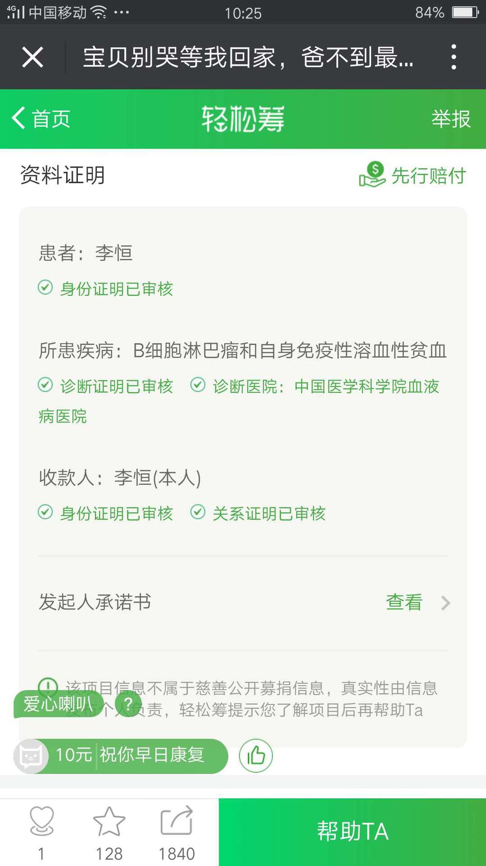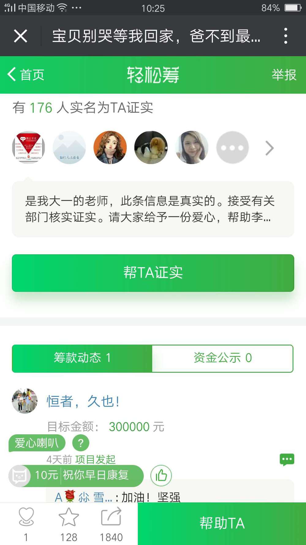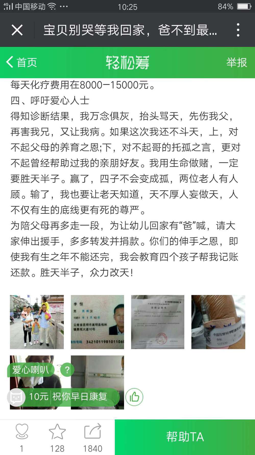 病魔无情,人间有爱,涓涓细流,汇成江海!