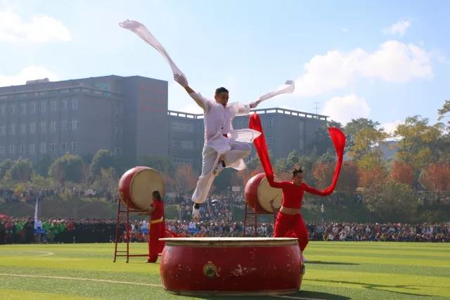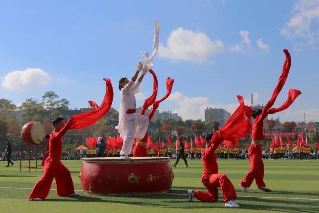 随着哨声的一声令下,表演太极拳的同学们威风凛凛地跑进了会场,整个绿茵场瞬间多了一股威严的气势。他们像是握着一个无形的球,在风中变得轻柔,却又感觉蕴藏了无穷的力量。他们用自己的努力,为我们展现出了中华武术的博大精深,也展现出了云工商学子坚韧不拔的精神。