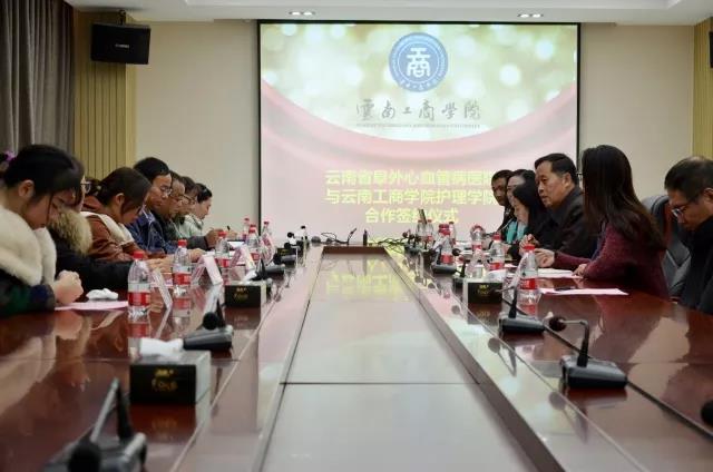 2017年12月13日,我校与云南省阜外心血管病医院在行政楼518会议室举行建立战略合作签约仪式。此举将进一步加强双方校企合作办学、提高人才培养质量的需要,有助于解决我校护理学院护理专业学生的毕业实习问题,同时为护理学院专任教师提供了临床实践的场所,对强化护理学院的专业建设和发展具有极其重要的意义。