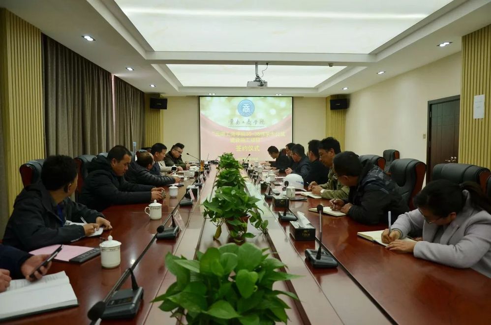 邹利斌常务副校长和方菊明董事长分别代表各自单位,在合作协议书上签字。会后,在李娅副校长和部分处室负责人的陪同下,云南工程建设总承包股份有限公司相关负责人实地查看了我校新建的4栋学生公寓施工工地。