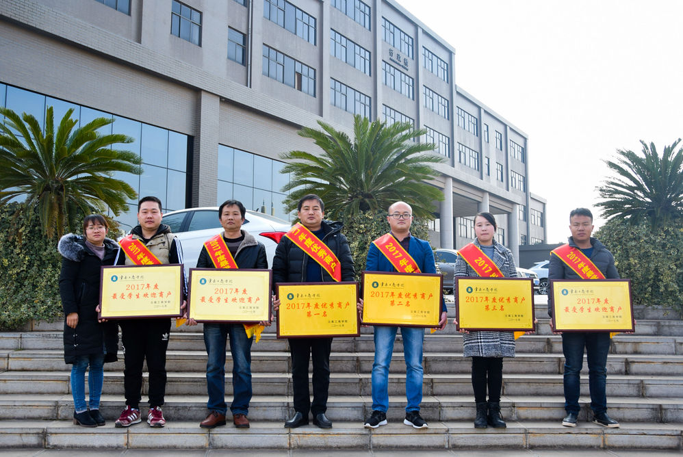 邹利斌副校长为2017年后勤工作表现良好的商户进行了表彰,奖项分为优秀商户和最受学生欢迎商户两项,受表彰的商户分别是如意餐厅、伊斋园、果蔬氧吧、一食堂、黄焖鸡米饭、手机美容坊。