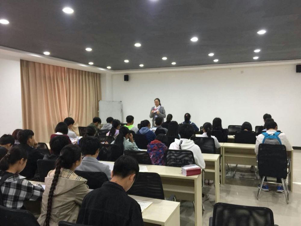 在设计学院考场,设计学院安排了省级三好学生获得者、视觉传达班班长、学生会主席张入芳同学,在带领考生参观了设计学院实验(训)室后,为考生们分享奋斗的青春最美丽-成长在云工商的励志演讲!