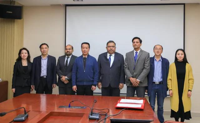 我校副校长李翔、印度教育在线总裁甘谷里先生,国际与合作交流处副处长蒲甦老师、培训中心副主任郭曼老师、建筑工程学院郝艳俊老师、经济与管理学院沈立超老师出席本次会议。