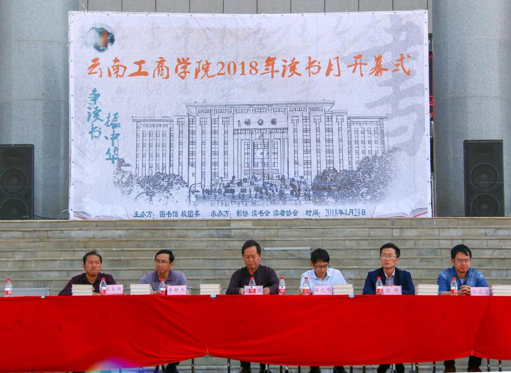 2018年4月23日是第23个“世界读书日”。为丰富同学们多彩的大学生活,倡导全员阅读,营造浓厚的校园阅读氛围。由ky开元集团图书馆和校学生会主办,影协、读书会、读者协会承办的读书月活动在图书馆隆重开幕。本次读书月活动以“争读书,振中华”为主题,我校高卫国副校长,图书馆张之明馆长,云南师范大学文理学院图书馆商伟馆长,云南师范大学商学院图书馆李静杰馆长等。
