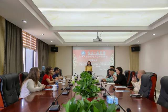 为迎接远道而来的加拿大外宾,促进中外文化相互交流,5月17日,在行政楼518进行了加拿大菲莎河谷大学师生游学开营仪式