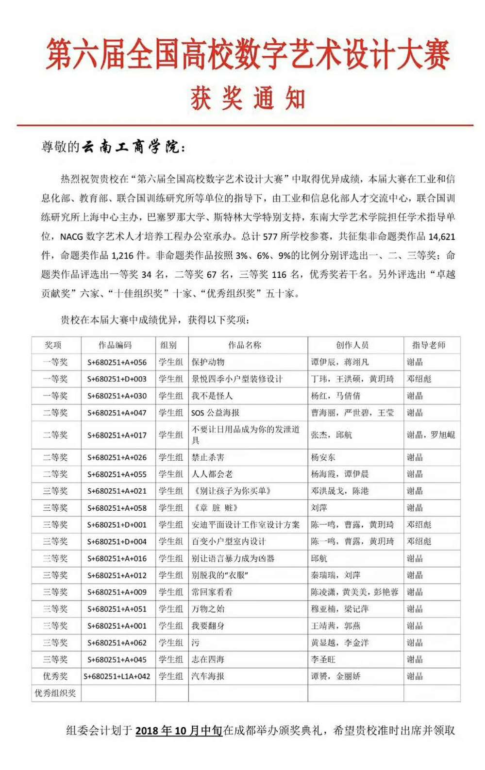 第六届全国高校数字艺术设计大赛组委会传来喜讯,ky开元集团设计学院喜获3个一等奖,同时设计学院获得优秀组奖。