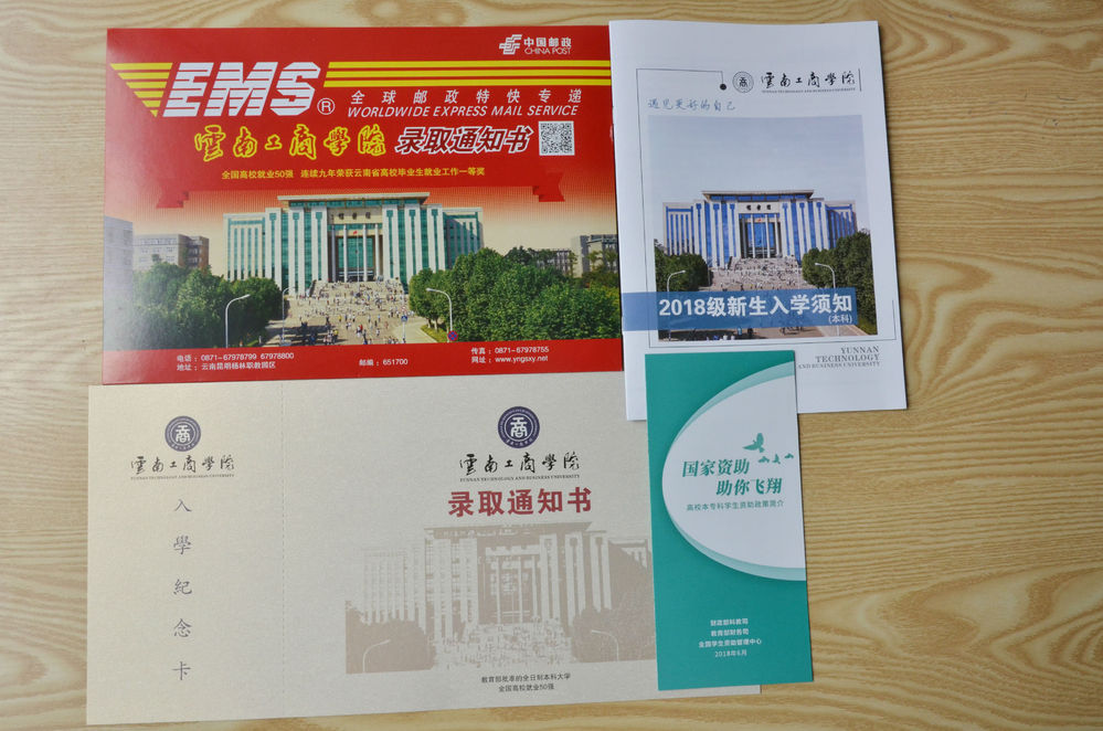 2018届新生第一批录取通知书已全新启航,将会带着云工商的爱意与祝福送到考生的身边。金秋九月,在云工商遇见更好的自己。