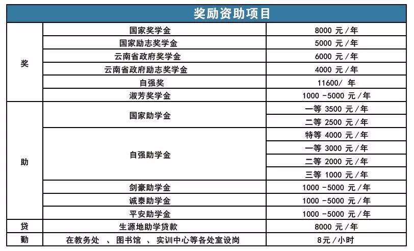 特别提醒针对云工商的学子,我校建立了奖、助、贷、勤为主体的资助体系(详情见表格),扩大受助学生比例、提高资助水平,基本解决了家庭经济困难学生就学问题。决不让一名大学生因经济困难而辍学。