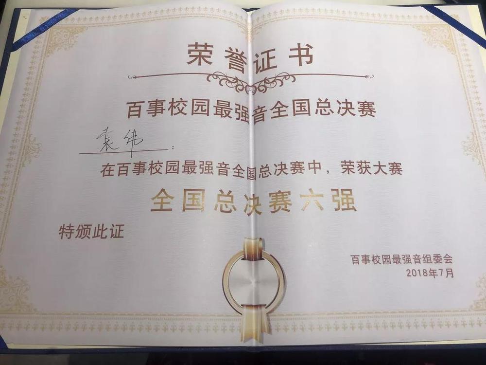 同时,袁伟想告诉2018级的学弟学妹们,如果自己有这方面的特长,遇到类似的比赛机会,尽量去争取,不要为了名次去竞争,放平心态去比赛,关键是自己真的喜欢演唱,并为之坚持下去。