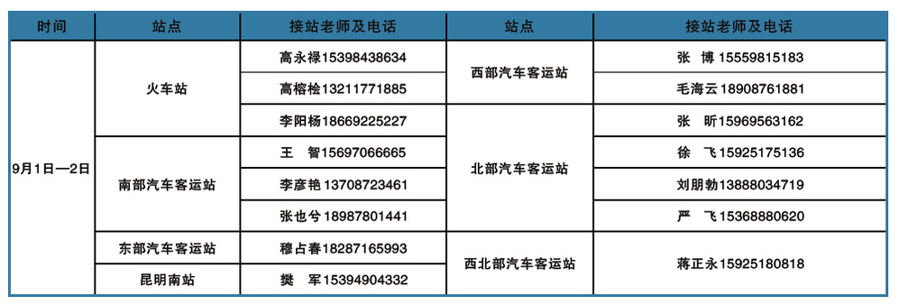 到昆后接站老师及联系方式: