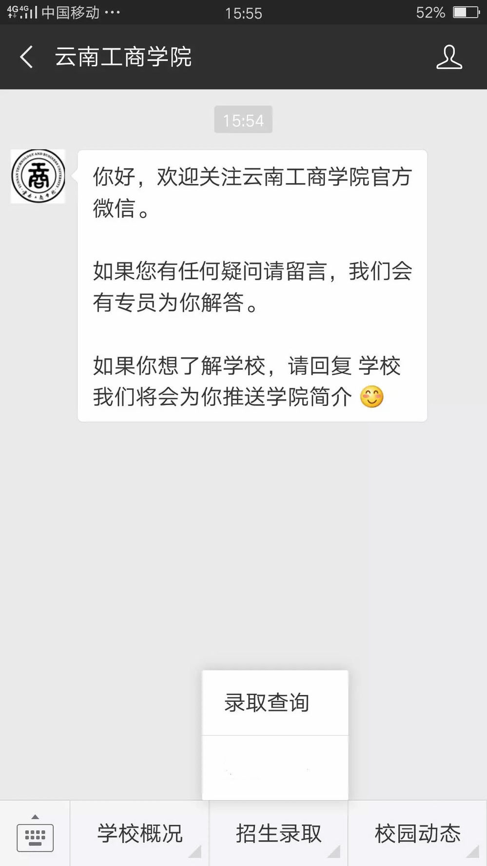 1、关注(YTBU1999)微信公众号——招生录取——录取查询