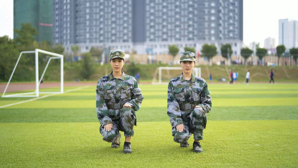 军训场上,站军姿、踏正步、唱军歌,充满朝气活力的姐妹俩表现出色。据说,指导她们训练的教官看着两人一模一样的侧面和极其默契的动作,也经常找不出姐妹的区别,用了三天,才把姐姐和妹妹分清楚。看来!训练场上分辨姐妹花也成了一种乐趣啊!