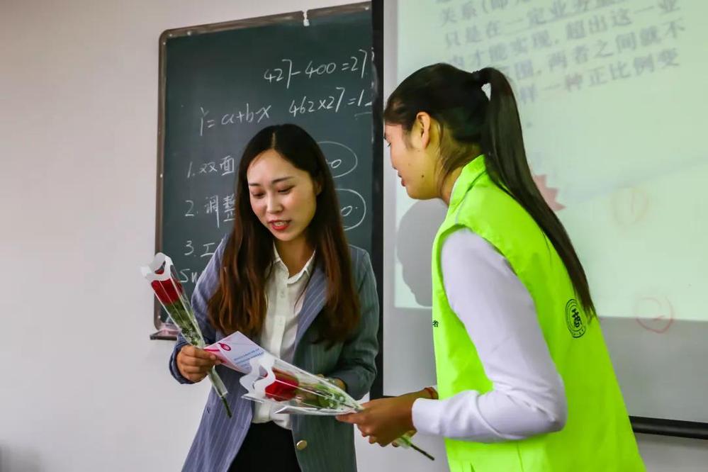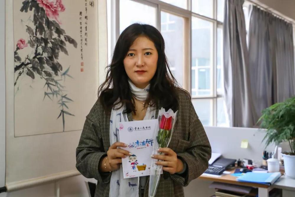 收到鲜花的经济与管理学院团总支书记李硒老师表示:“远远的就看见一群人在楼上活动,我就猜到了,收到这份礼物十分惊喜,谢谢同学们准备的这个活动。”