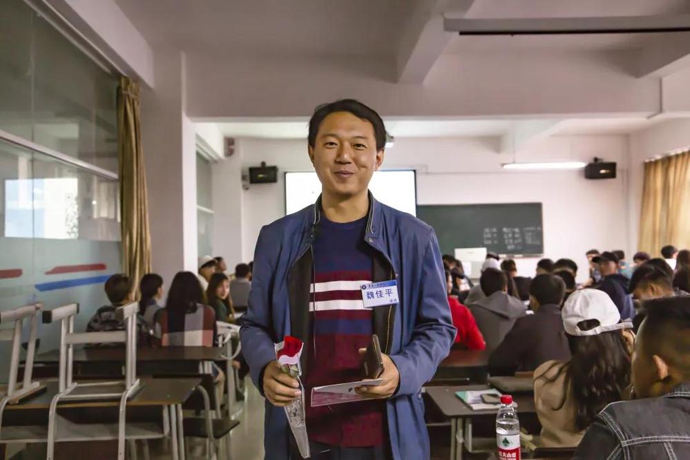正在上课的马克思主义学院的魏佳平老师面对惊喜很激动,他说道:“在云工商的第九个年头了,在这样一个特殊的日子里收到这样特殊的一份礼物,真的很感动!”