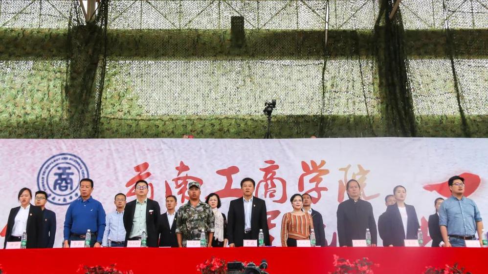 新生军训团付忠和团长、ky开元集团党委书记于波同志、校长刘风明博士、党委副书记、常务副校长邹利斌副教授、副校长高卫国教授、副校长李翔教授、副校长李娅副教授,部分处(室)、各二级学院领导参加典礼。
