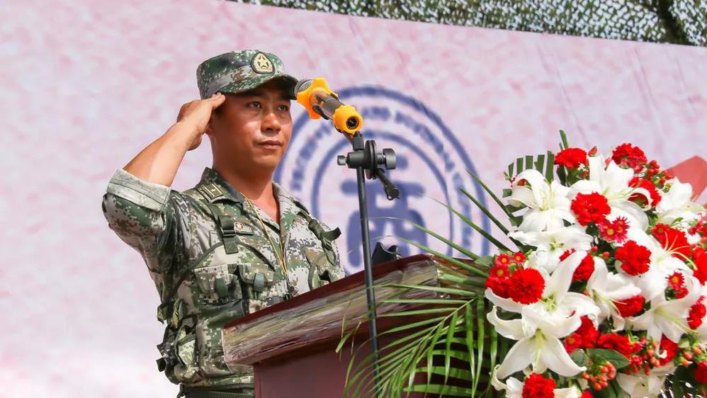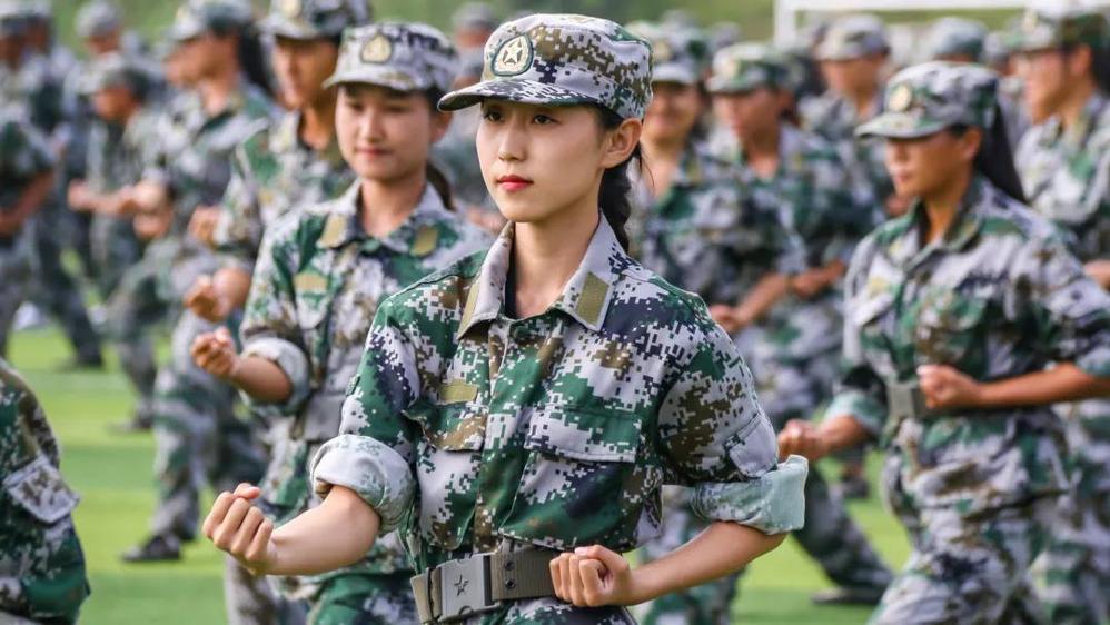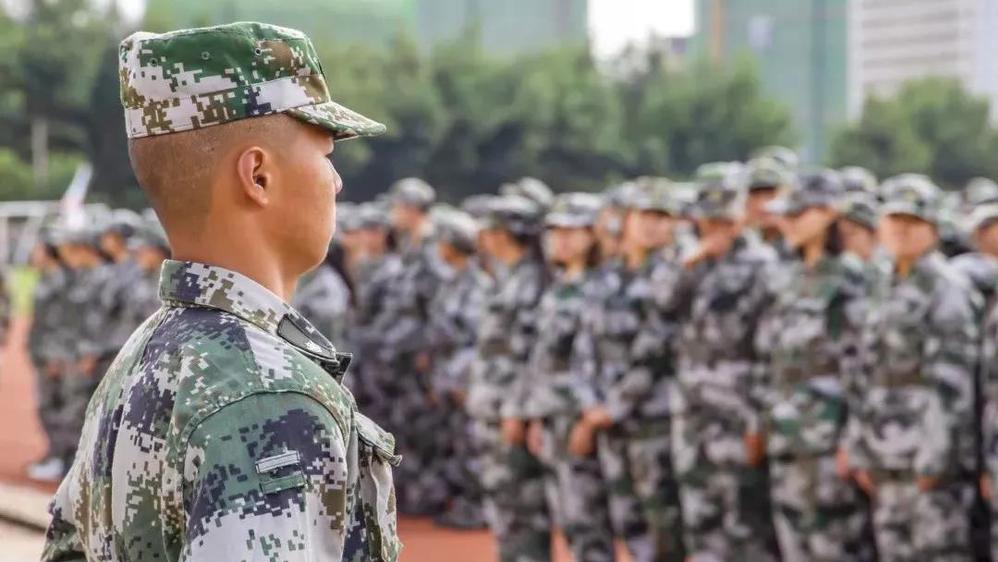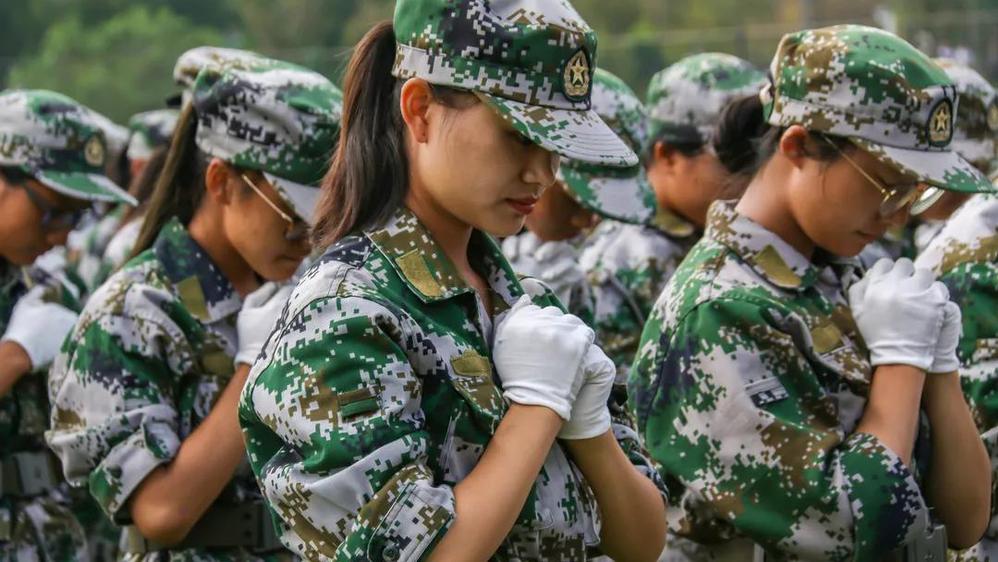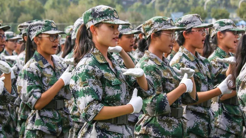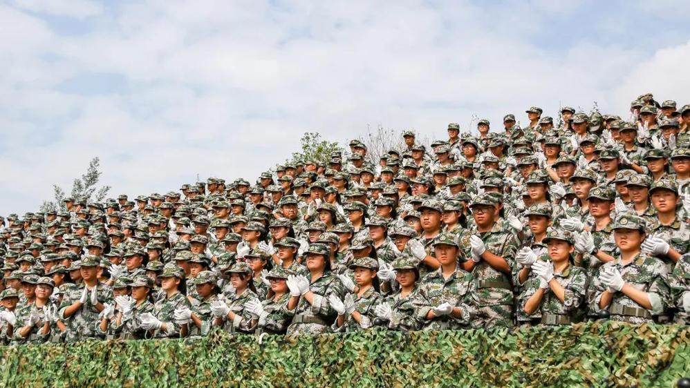 升国旗奏国歌,军人之姿立地顶天,万千绿军装的学子,向国旗行注目礼,耳畔回响国歌的激昂旋律。