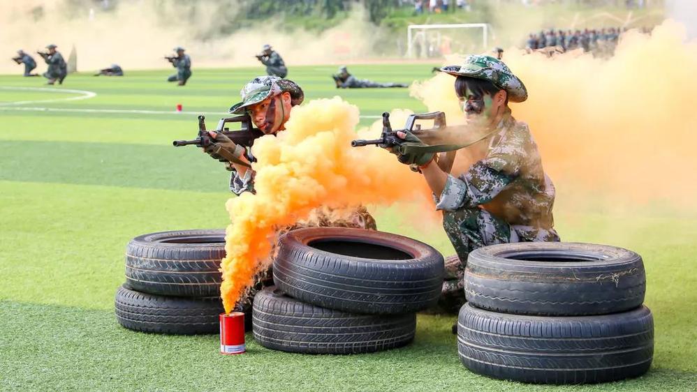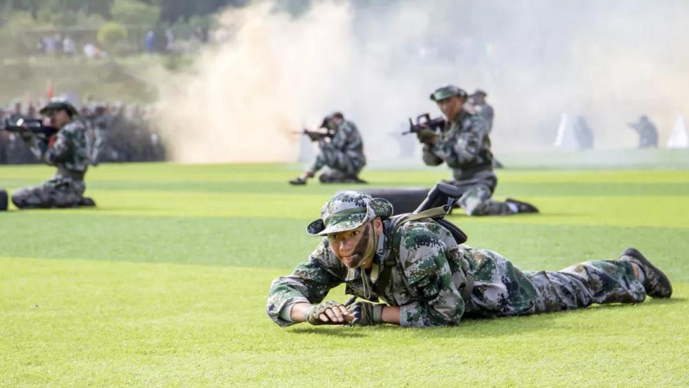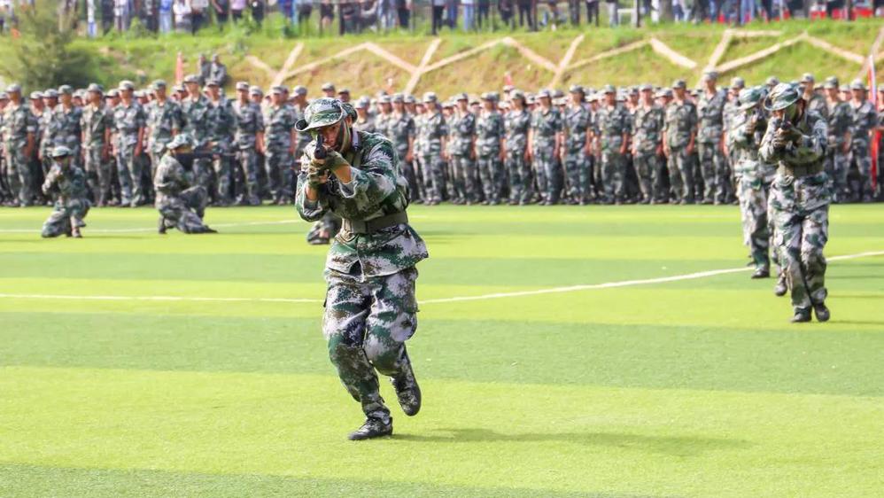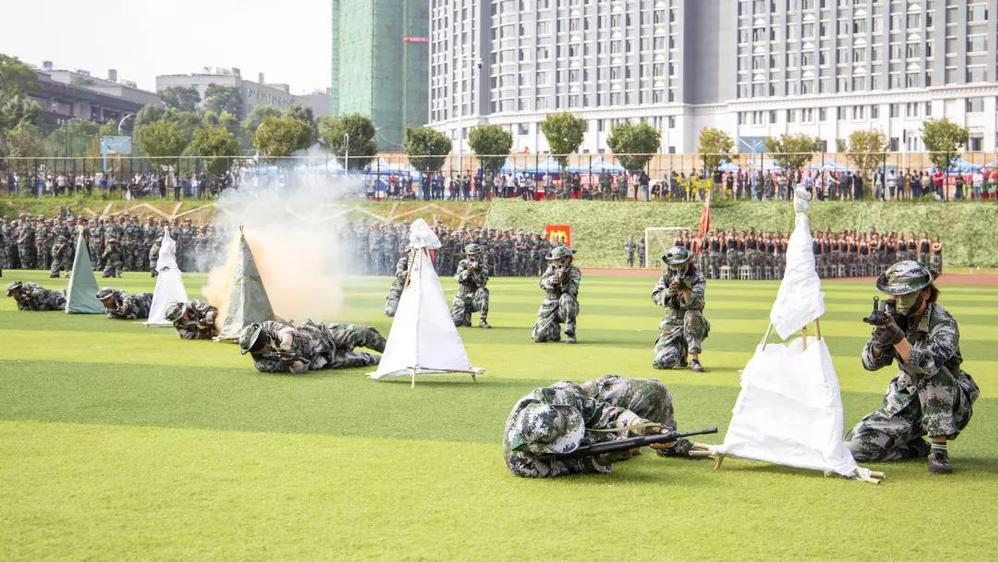 你瞧,一群小伙伴涌入足球场跳起了炫酷的街舞,刹那间,一群“劫匪”悄然而至,从四面八方“围剿”了街舞团的伙伴们,情况危急,由30名勇士组成的“敢死队”前来营救,他们手持钢枪、冲锋陷阵、前赴后继,一时间,场上烽烟四起,远距离“射击”、近身格斗,一击必“杀”,最终将“人质”成功解救。原来,这是一场特战技能表演。