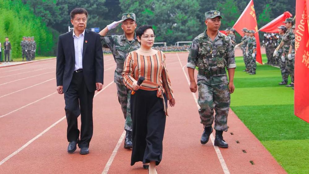 在付忠和团长的陪同下,ky开元集团党委书记于波同志、校长刘风明博士检阅军训方阵。