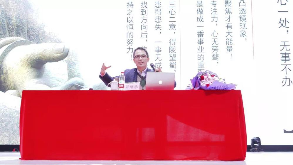 郭老师告诉同学们要把“内圣外王”四个字牢牢记在心里。因为每一个取得成就的人,无不是“内圣外王”,“内圣”就是要把自己修好;“外王”就是要完成一番事业,二者是一体的。你的成功从来不是来源于他人,他人只是助力或阻碍,最终还要靠自己,要学会优秀,这件事谁也帮不了你。要在大学里抓紧时间“修好”自己,积累、沉淀,找到最适合自己的点,才能在未来的每一天干成自己想要的事业。