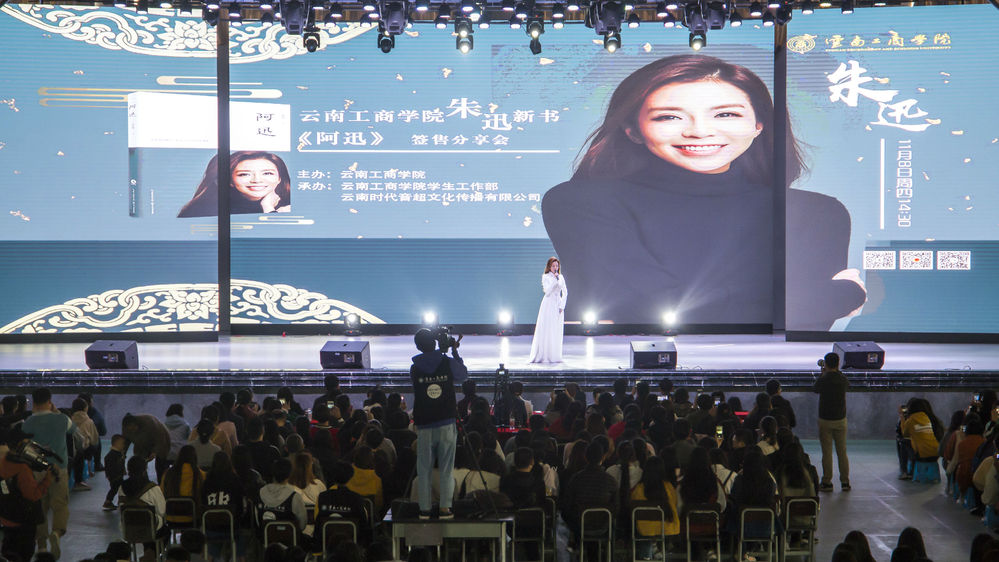 11月8日下午,央视著名主持人朱迅携新作《阿迅》作客云工商名师大讲堂,平日里寂静的体育馆一下子变得热闹起来,不过十几分钟,体育馆内早已座无虚席。