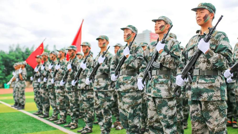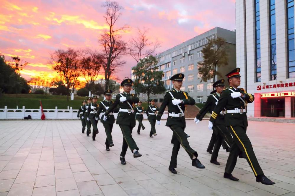 夕阳西下,笔直坚实有力的正步,一遍遍在图书馆旁踏响,只为第二天清晨,当国歌响起的时候,能够展示出最完美的一面。