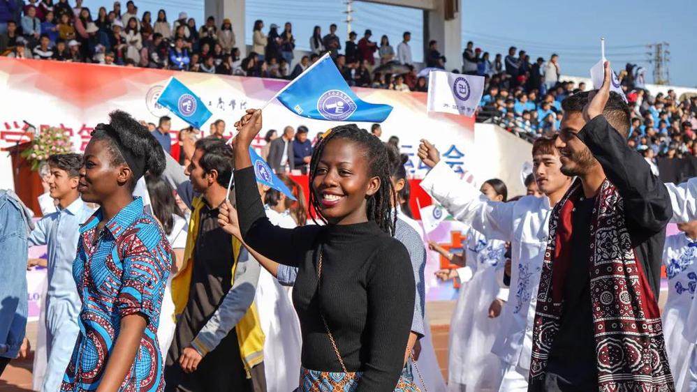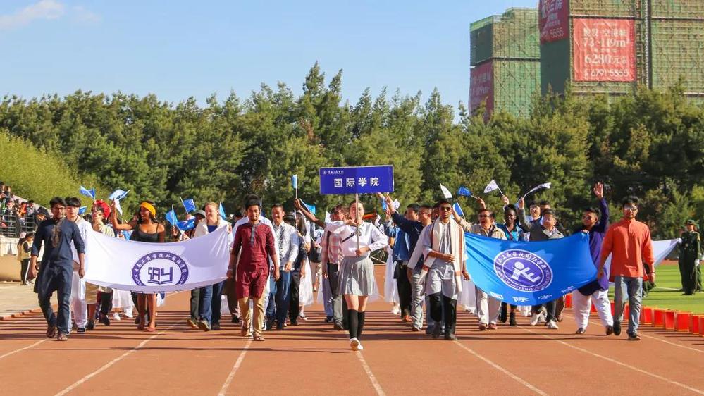 国际学院,也就是留学生们所在的学院,来自33个国家的300多名留学生为人山人海的运动场增添了一抹亮色。