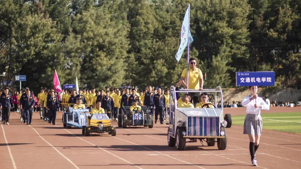 他们,神采飞扬,步伐矫健。他们就是本次运动场上那道靓丽的风景线——交通机电学院!他们驾驶着自己亲手打造的六辆汽车开启新的征程!