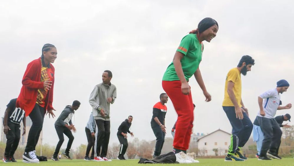 清晨,露水微霜。留学生积极参与,一早来到田径场进行晨练的热身运动。在晨练中,他们充分的舒展身体,活动筋骨,为即将展开刺激且嗨的活动摩拳擦掌,跃跃欲试。