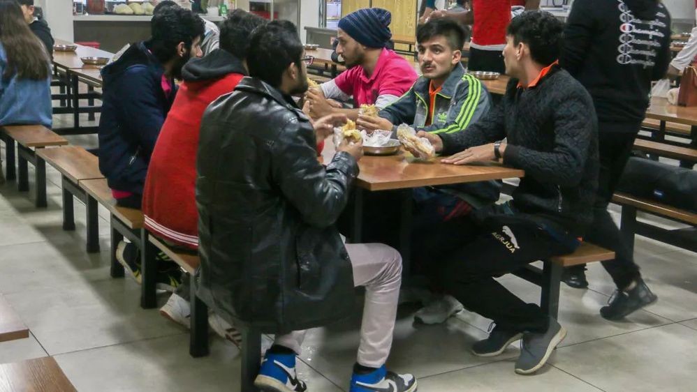 不要小看热身,这也是一项十分消耗体能的活动,为了同学们能够以饱满的热情投身活动,留学生同学来到回族食堂进行了早晨(派对)。