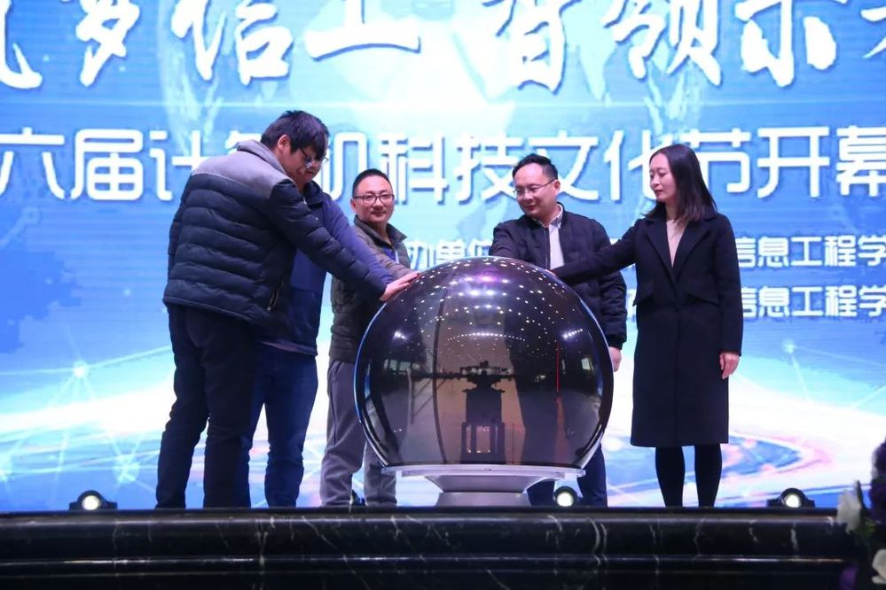 与会嘉宾按下象征圆满的水晶球后信息工程学院“筑梦信工,智领未来”第六届计算机科技文化节正式启动。潘明波院长表示:此次举办计算机科技文化节的主要目的是为了培养学生的创新思维、竞争意识、团队合作精神,搭建课外实践平台,促进杜尔课堂发展。