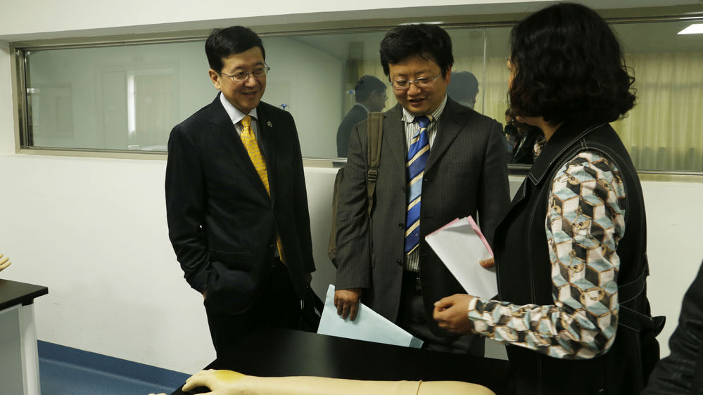 仪式结束后,郭永洪院长带领日方一行领导参观了我校护理学院的人体生命科学馆、多功能实验室模拟病房等多间护理实验室,并亲临我院实训楼A309与同学交流、答疑及面试工作,同学们积极提问,踊跃发言,充分对介护进行了了解!