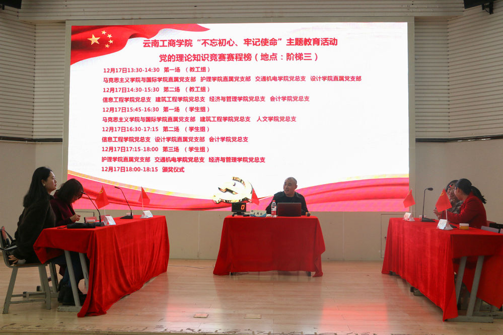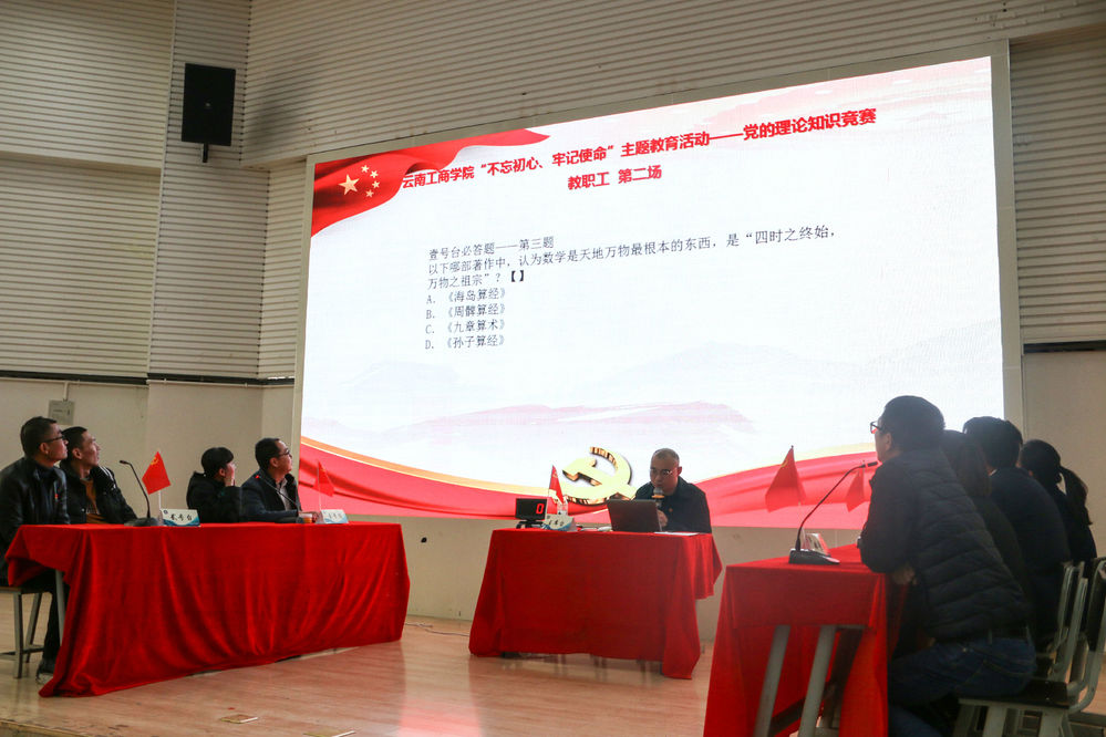 为深入开展“不忘初心、牢记使命”主题教育,进一步学习、宣传习近平新时代中国特色社会主义思想和党的十九大精神,检验主题教育成果,助推“学习强国”平台学用工作,我校于2019年12月17日在阶梯教室3举办了党的理论知识竞赛。党委委员、组织部部长、校长助理佘达文,党委委员、纪委书记魏佳平及相关领导出席了本次活动。