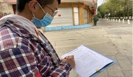 在疫情期间为了排查村民的体温情况,王怡文同学要去每家每户的测量体温,登记好每个人、每位村民的详细信息,为他们做好返岗前的准备工作,为他们解决后顾之忧。