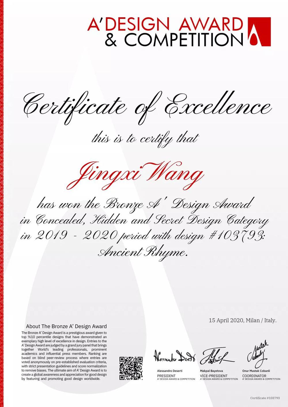 今年三月,王靖茜同学无意中看到艺术与设计学院正在征集优秀作品参加2020年国际A’ Design全球设计大赛,抱着试一试的心态,她将作品提交给了老师。令她倍感惊喜的是,作品被老师选中后,一直过五关斩六将,进入了世界舞台。