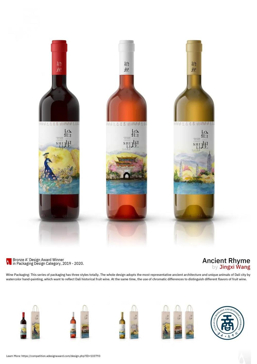 整组作品利用色差来区分果酒的不同风味。作品给人既古朴又典雅的视觉感受,获得大赛评委一致好评!