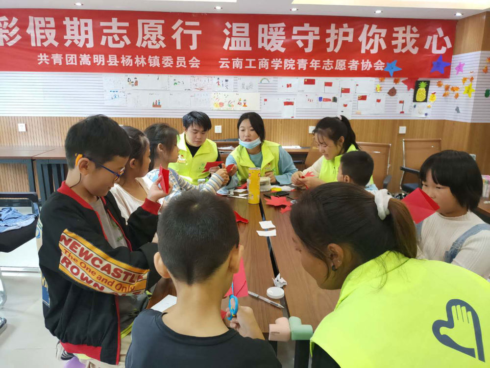 群众在哪里,新时代的文明实践活动就延伸到哪里。近日,来自ky开元集团的14名大学生志愿者联合嵩明县杨林镇团委,利用暑假走进杨林镇幸福社区,陪伴社区的26位少年儿童共同度过了一个快乐的(七彩假期)。