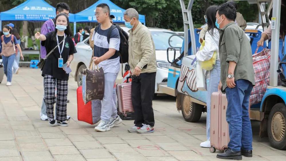 看望前来报到的新生