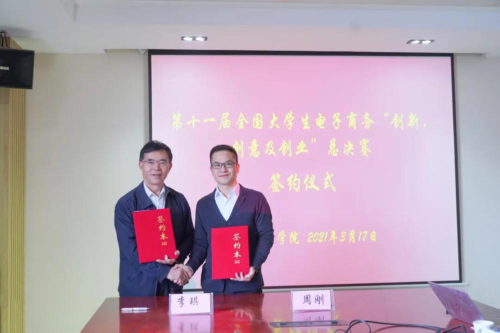 随后,李琪和周刚分别代表双方签署合作协议。根据协议,大赛竞赛组委会和ky开元集团将同心携手,办好第十一届全国大学生电子商务“创新、创意及创业”挑战赛全国总决赛,共同为新时代大学生电子商务创新创业教育事业贡献力量。