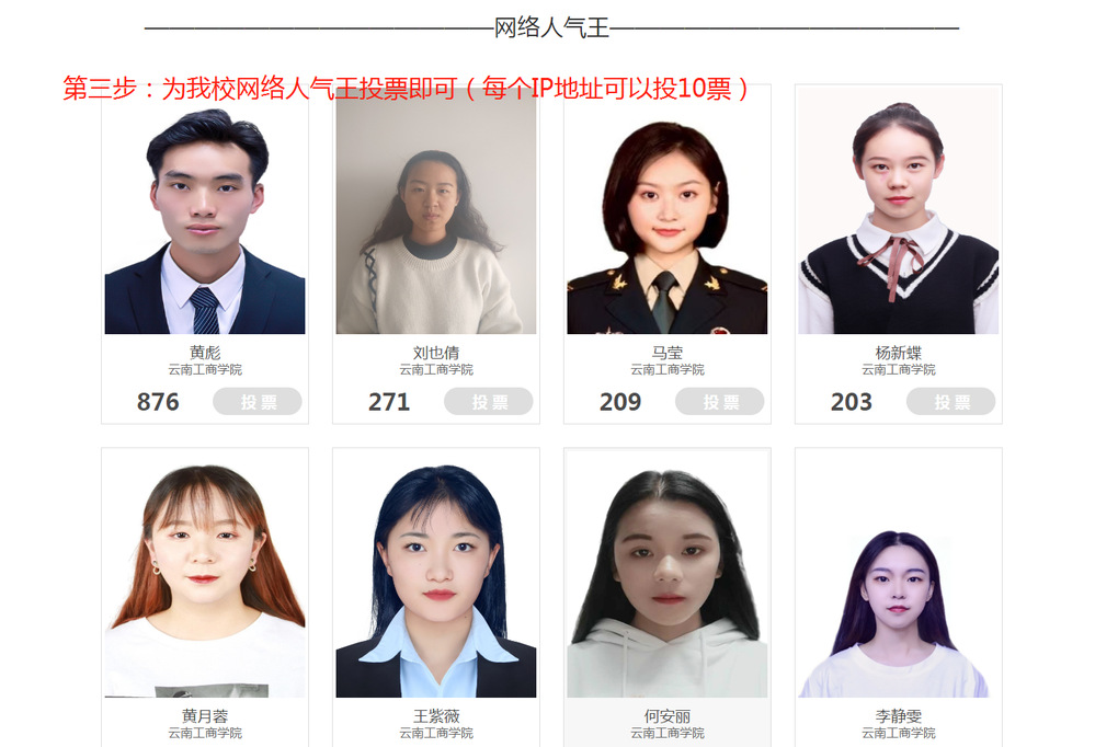 2.为我校网络人气王们投上一票(每个IP可投10票)