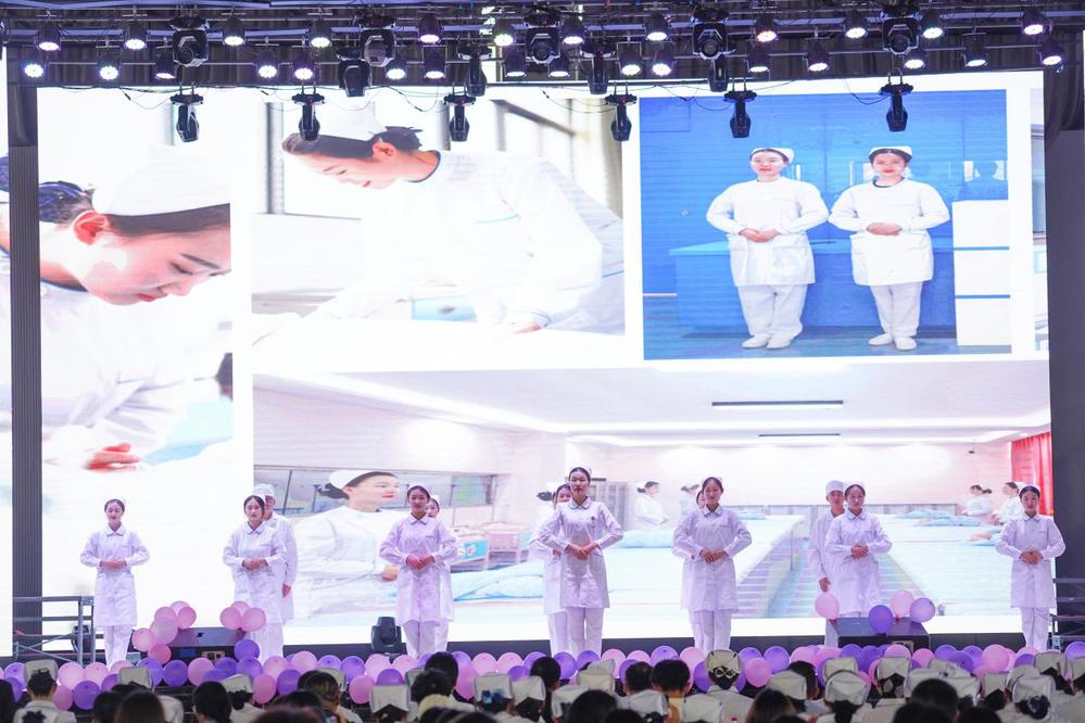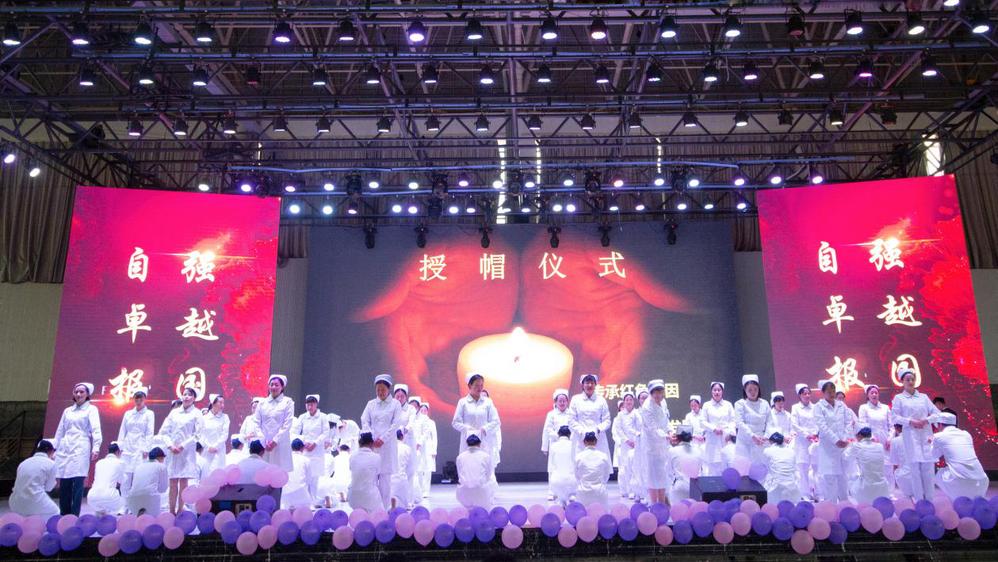现场举行了授帽仪式。一顶别致的燕尾帽不仅是一个护理人员的标志,更是一项守护生命的责任,新一代青年从前辈手中接过的,是继续负重前行的勇气与担当。同时,全体学生进行了“南丁格尔誓言”宣誓,再次重申了白衣天使终生的奋斗目标。