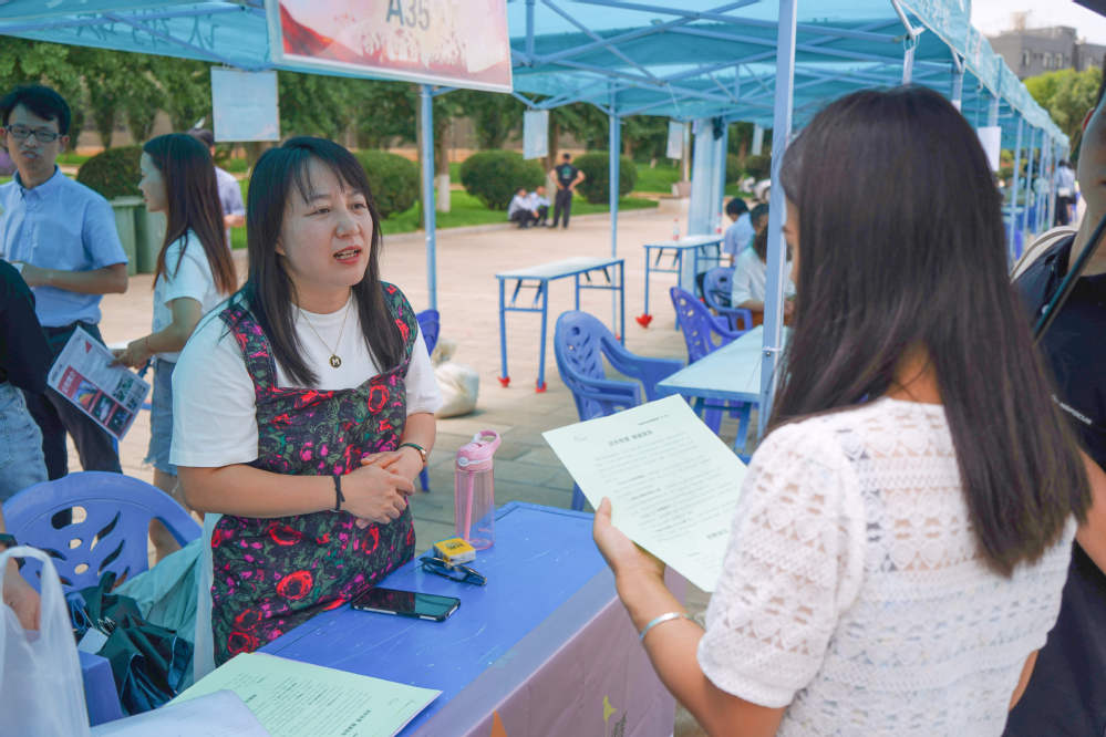 活动现场,招聘企业通过各种方式为同学们解说相关岗位信息,同学们关注的重点集中在专业对口、薪酬待遇、工作地点、职业前景等方面。