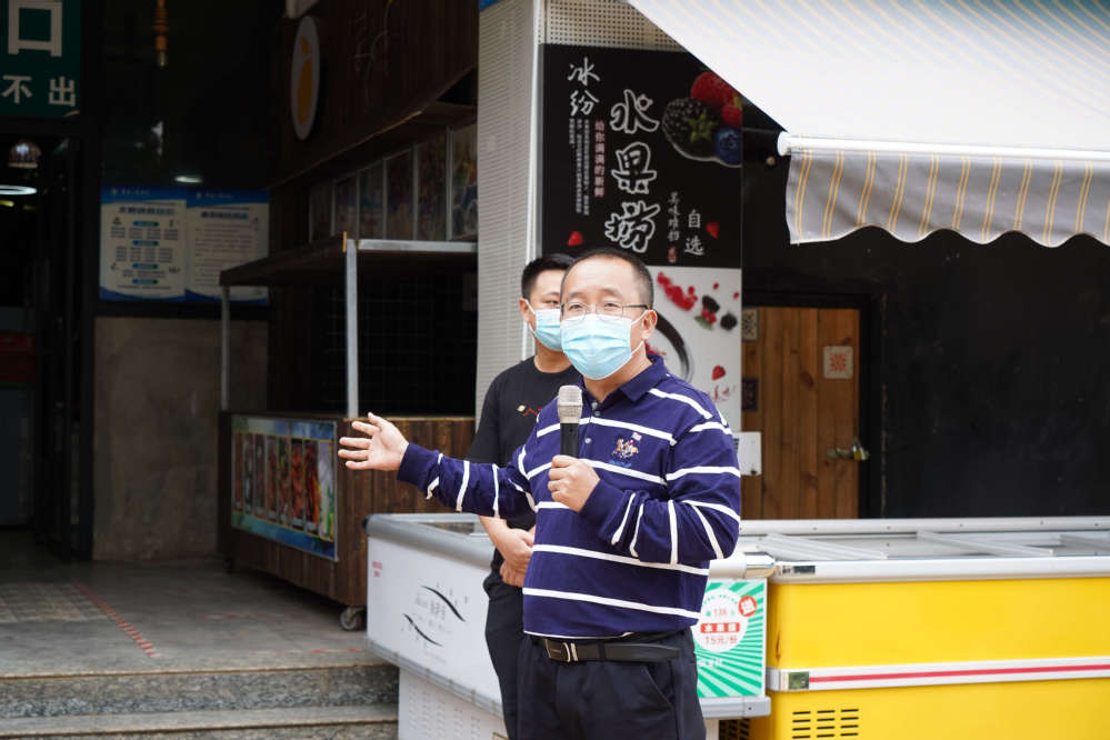 演练采取模拟现场处置演练方式,分为校门口接待流程演练、学生公寓出现学生疑似症状演练、服务保障演练(超市购物、食堂就餐)三部分进行。