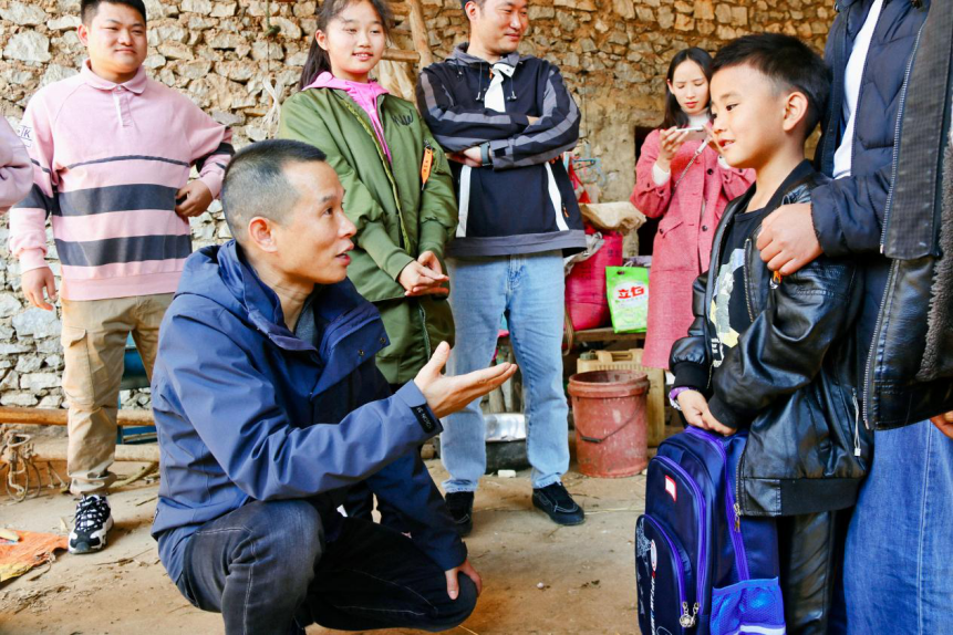 2021年全国两会前夕,李孝轩深入云南砚山县稼依镇落太邑村、维摩乡斗果小学等地,调研偏远山村孩子的入学情况和山区小学办学情况,开展相关帮扶。