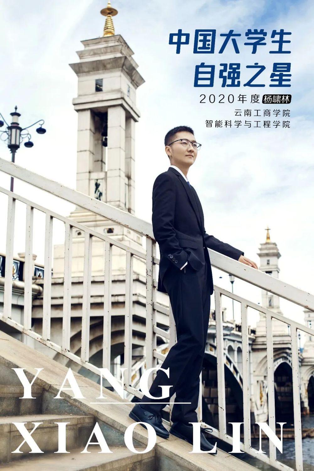 2020年度“中国大学生自强之星”推报活动由共青团中央、全国学联指导,中国青年报社、新东方教育科技集团联合开展。活动以“青春自强 奋勇争先”为主题,自开展以来,受到广大高校师生的密切关注。各高校寻访青年榜样,弘扬自强精神,掀起了“校校皆有、人人可为自强之星”的热潮。杨啸林,中共党员,来自智能科学与工程学院软件工程专业 2018级【本科】软件工程1班。在校期间努力学习、积极参加社会实践,曾荣获云南省三好学生、第六届互联网+创新创业大赛省级金奖、第七届互联网+创新创业大赛国家级银奖、第十一届全国大学生电子商务三创赛全国二等奖等多个奖项,并立足农村实际,组织实施“云滇农仓”和“云工匠芯”项目,立志为乡村振兴贡献一份自己的力量