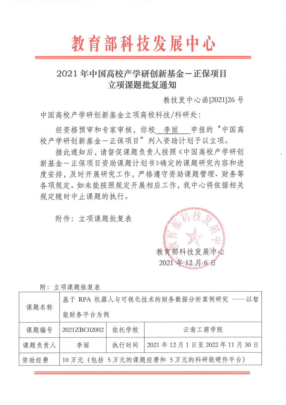近日,教育部公布了2021年中国高校产学研创新基金项目名单,ky开元集团会计学院李丽老师申报的“基于RPA机器人与可视化技术的财务数据分析案例研究——以智能财务平台为例 ”课题入选,将予以立项,并列入资助计划,资助经费为10万元。