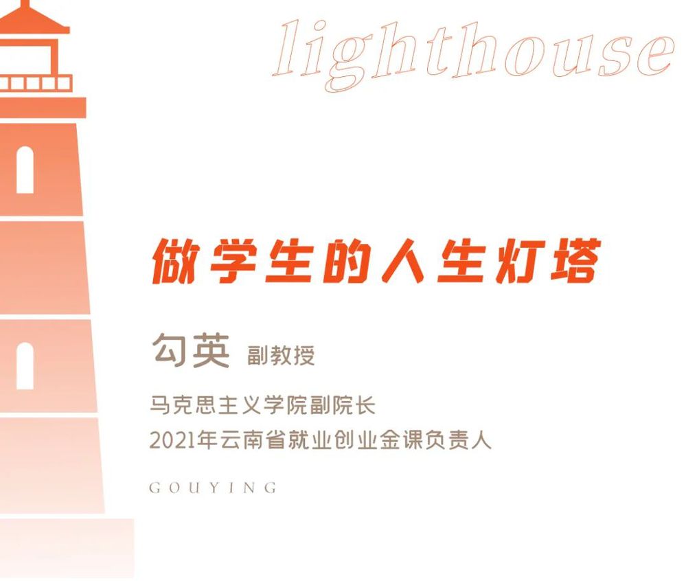 目前,勾英主要讲授《创新与创业》、《就业指导》等课程,学生评教成绩均名列前茅,并荣获云南省首届创新创业师资教学技能大赛金奖。